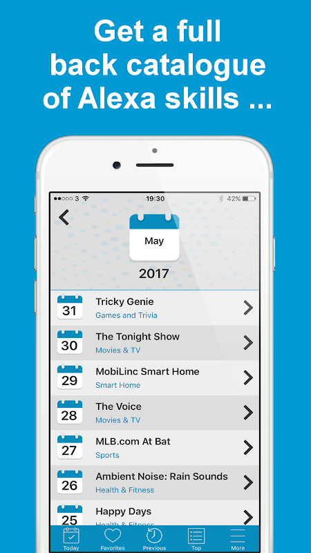 Browse over 20 categories of the best skills you need for your Alexa device, and you can enable the Alexa skill directly from the App into your Alexa device.