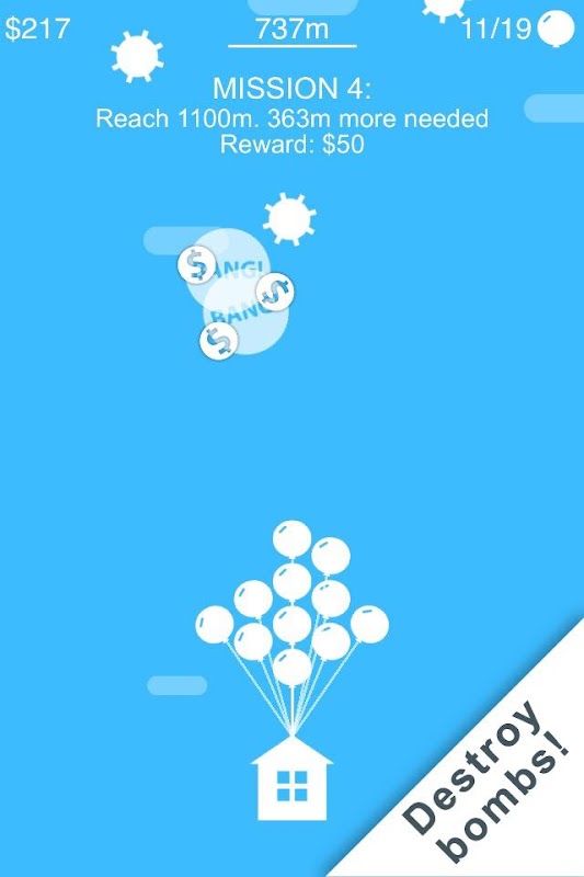 Spend hours playing this, relaxing, fun and addicting game trying to lift your house as high as you can. Collect rising balloons and destroy falling bombs to help lift the house higher. Collect coins along the way by destroying bombs. Use these coins to purchase upgrades and abilities in the shop. Complete missions and unlock awards for extra coins.