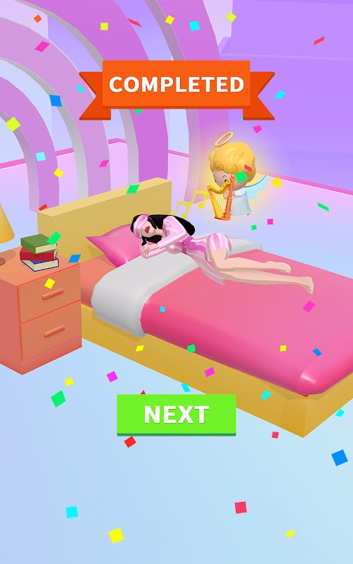 Help the sleepwalking girl collect enough sleep-inducing items on the way back to bed.
