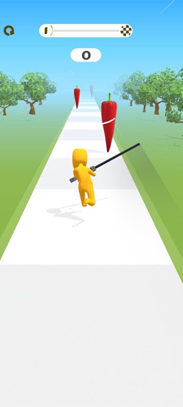 تحرك من اليسار إلى اليمين وقم بتقطيع أكبر عدد ممكن من الفاكهة