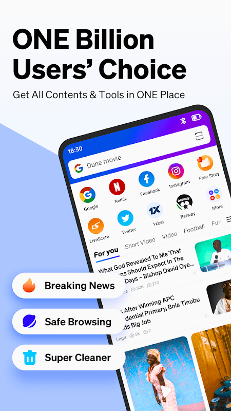 عبر المتصفح انتبه لتجربة التصفح. طازج وخفيف. يمكن لكل هاتف يعمل بنظام Android الاحتفاظ بالمتصفح جيدًا في متناول اليد نظرًا لحجمه الصغير واستخدام الذاكرة.