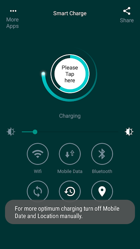 Smart Charge is the simplest and easiest app to get control of the basic controls of the android phone which drain battery charge knowingly. Keeps android phone work well, protect android from poor charging and extends androids battery life.