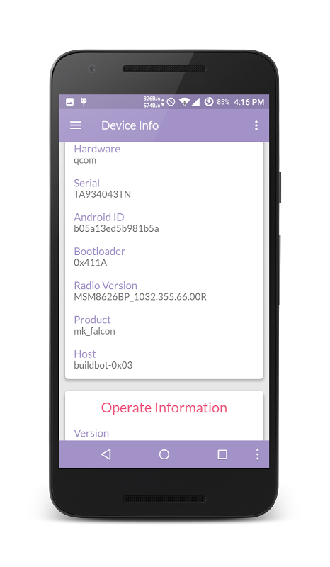 - التحقق من بعض المعلومات جهازك (نظام، مشغل) - معلومات الدعم الأخرى في المستقبل.