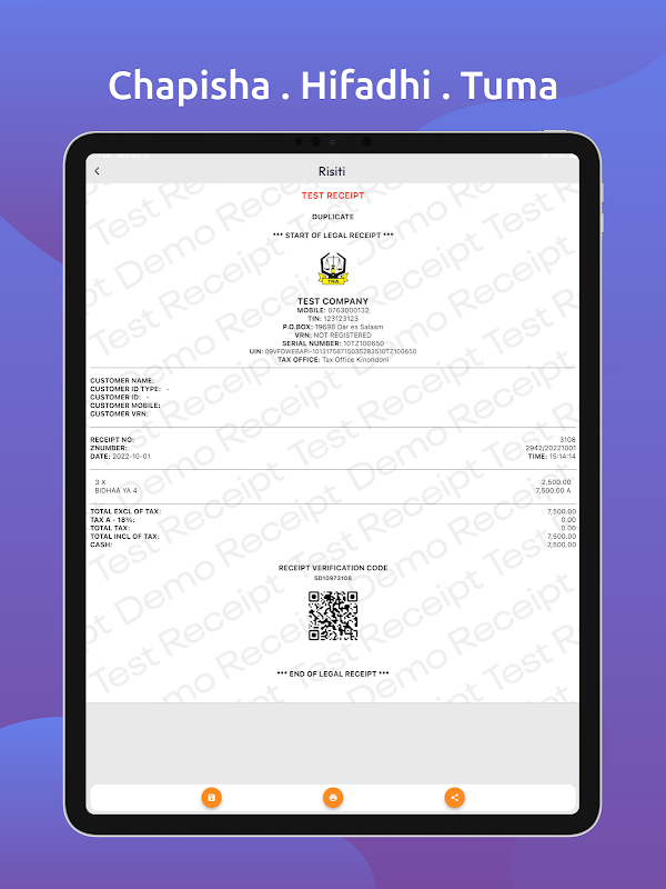 تطبيق inayokuwezesha kutoa risiti za mauzo zilizopitishwa na TRA kwa kutumia simu yako kirahisi na uhakika zaidi.
