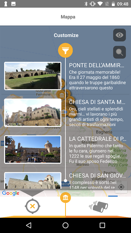 التطبيق للتمتع التراث الفني من باليرمو، مونريال وسفالو.