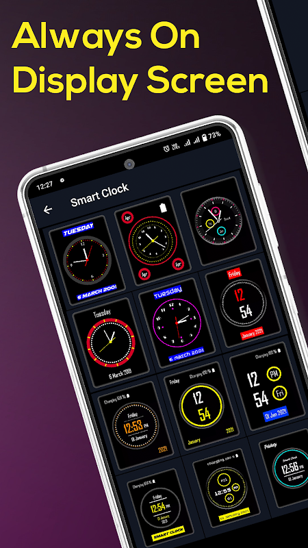 دائمًا على شاشة قفل الشاشة تتميز بساعات أنالوج ، LED ، رقمية ، ذكية