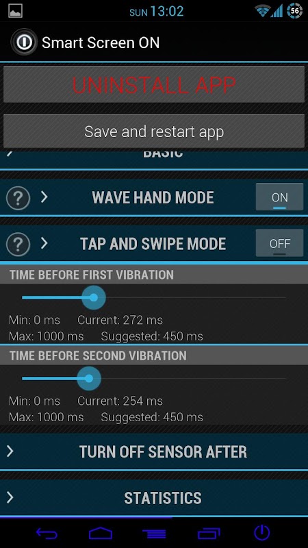 يمكنك أيضًا تعطيل المستشعر بعد فترة من الوقت يمكنك تعيينها في لوحة التطبيق.