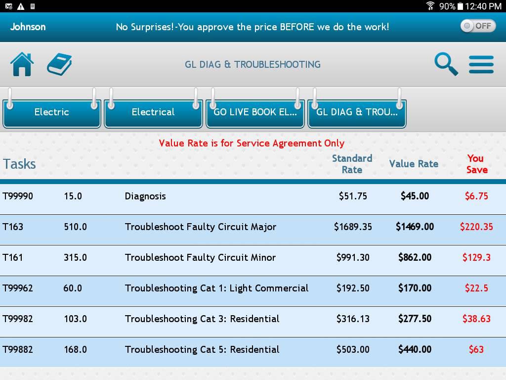 شقة قيم سعر حجز السباكة HVAC الكهربائية التي تم اختبارها ميدانيا وتطويرها من قبل المقاول خدمة حقيقية. زيادة الأرباح الخاصة بك عن طريق إغلاق سريع الوظائف والحد من شكاوى العملاء والتسعير هو سهلة وفعالة وبأسعار معقولة مع كتاب السعر معدل ثابت من الربح الكركدن ®. يمكنك عرض كتابك وتجد المهام في ثوان تسريع عملية البيع. أبدا الوقوف أمام من العملاء تبحث مرة أخرى للحصول على سعر، أو الدعوة إلى المكتب. تظهر عملائك الأسعار الخاصة بك في ثوان، ونعرف أن المهمة يضع المال في جيبك. سواء كنت تبحث عن كتاب السعر سعر ثابت لأعمال السباكة والتكييف أو الكهربائية، الاعتماد على خبراء في الربح الكركدن ® لوضع المال في جيبك اليوم! يتطلب الاشتراك في www.profitrhino.com - تريل مجانية
