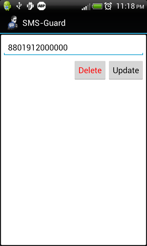 4. For number: suppose you want to guard/ignore all sms from number "+8801912000000". Now from add number just add this number (no quotes)