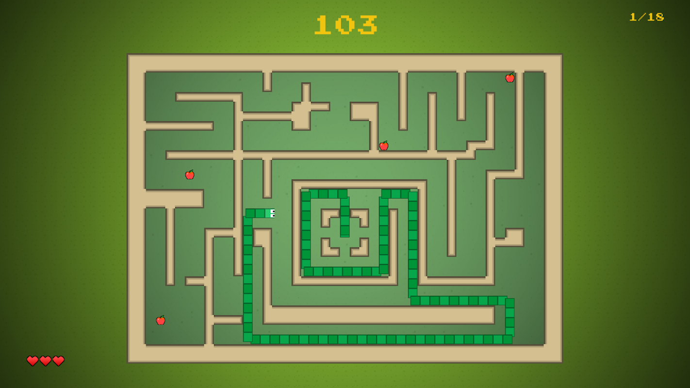 Beat puzzle inspired levels by collecting all apples. Don't hit any of the walls. Sounds easy? Well it's not as easy as it sounds!