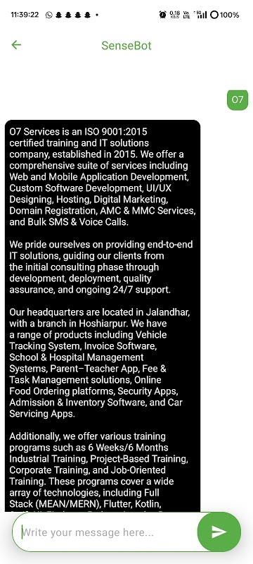 روبوت مدمج للإجابة على جميع استفساراتك المتعلقة بخدمات O7.