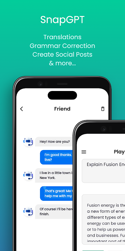 🚀 اكتشف مستقبل الدردشة باستخدام الذكاء الاصطناعي مع SnapGPT، وهو تطبيق مبتكر يمزج بين الذكاء الاصطناعي المتطور والميزات سهلة الاستخدام. سواء كنت مهتمًا بمحادثات عميقة، أو دردشة ممتعة، أو تحتاج إلى مساعد ذكي، فإن SnapGPT هو الحل الأمثل لك!
