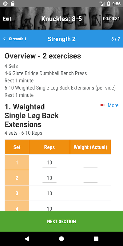 تتبع الأداء لكل من اللياقة البدنية والرماية (التحقق من 1RM الطاقة النظيفة وايل سيادة الرئيس في نفس التطبيق)