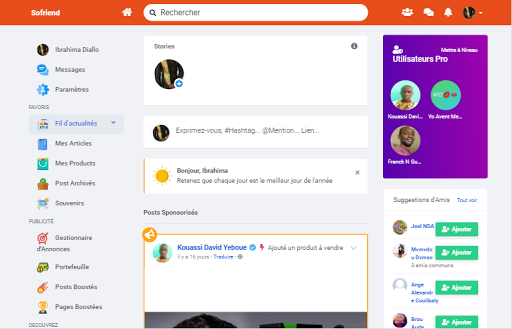 Sofriend est un réseau social 100% africain. Likez, postez, partagez, commentez et gagnez un maximum de points. Convertissez vos points en argent ou réutilisez les pour communiquer sur votre business.