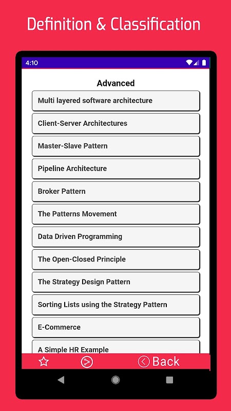 Software architecture designing app is essential for students. It will gives you example and explanation. This Software architecture app will provide you common & useful chapters. So now you can carry your Software architecture book collection anywhere by this app and can learn anytime.