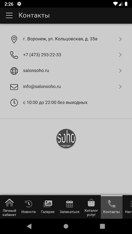 معلومات Soho ГЧ салон красоты Воронеж APK
