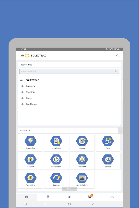 SolecSmart من Solectrac هو أداة دعم الأعمال الكاملة لجميع عمليات البيع وما بعد البيع. يتم استخدامه من قبل تجار وموردين وعملاء Solectrac. إنه تطبيق بسيط ومتكامل وسهل الاستخدام ، لذا يمكنك الوكلاء والعملاء البقاء على اتصال بسهولة مع Solectrac لجميع الأنشطة التجارية ذات الصلة. يعمل SolecSmart عبر الأجهزة المحمولة وسطح المكتب بسلاسة. إنه يعمل كأداة تمكين وتمكين لتحسين الأعمال وأنشطة الدعم. يسمح تطبيق SolecSmart Mobile App بالوصول إلى ميزات ووظائف البرنامج المستند إلى الويب من خلال الجهاز المحمول: كتالوجات القطع الإلكترونية ، وطلب قطع الغيار والمنتجات / تتبعها ، وطلبات دعم الموزعين ، والوصول إلى مطبوعات المنتج ، والمقالات المعرفية ، والحصول على دعم نشط لـ جميع منتجات Solectrac من خلال الفيديو والرسائل الفورية.