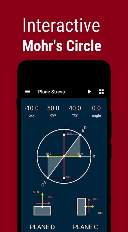 في هذا التطبيق، هل سيكون قادرا على استكشاف العالم من الميكانيكا الصلبة. ويشمل التطبيق العديد من الموضوعات الهامة في مجال الميكانيكا الصلبة التي هي أساسية لالمدنية والميكانيكية والطيران والهندسة النووية والعديد من فروع الفيزياء مثل علوم المواد.