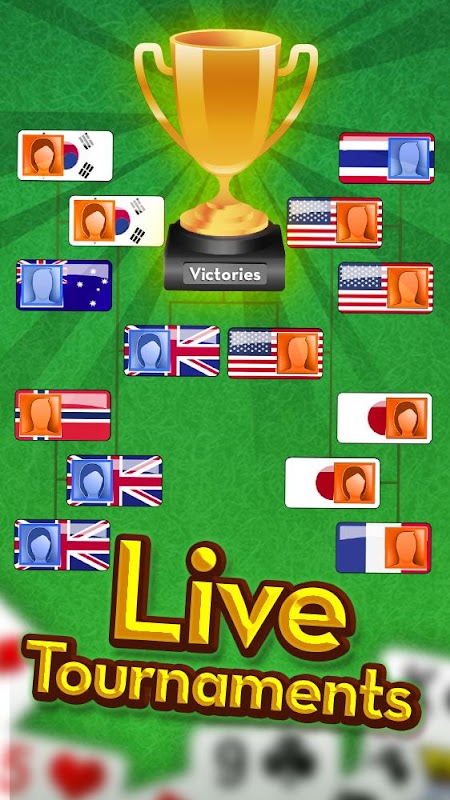 - شارك في بطولات مثيرة لثمانية لاعبين طوال اليوم لتربح مكانًا في قائمة متصدري لعبة السوليتير.