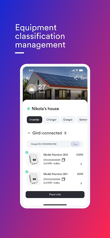 من خلال تطبيقنا المصمم بذكاء، يمكنك الحصول على رؤى شاملة من خلال واجهة سهلة الاستخدام. قارن بين توليد الطاقة عبر أطر زمنية مختلفة، وقم بتفويض أذونات الإدارة، وتواصل بسهولة مع قسم الخدمة لدينا للحصول على الضمان أو الدعم الفني. تطبيق Solplanet هو رفيقك الذكي في رحلتك إلى حياة خالية من الكربون، ويعيد تعريف المستقبل بالطاقة الخضراء المستدامة.