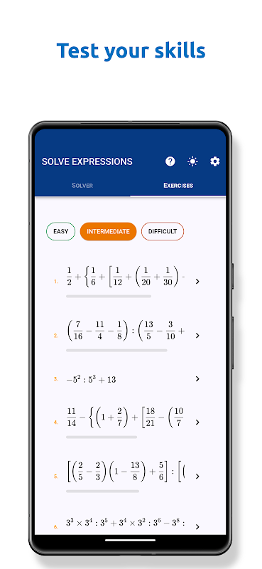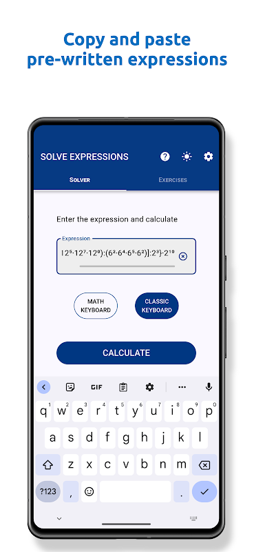 يعد "حل التعبيرات" الرفيق المثالي لأي شخص يتطلع إلى تحسين مهاراته الرياضية. لا يحل التطبيق التعبيرات المعقدة من خلال إظهار كل خطوة فحسب، بل يتضمن أيضًا لوحة مفاتيح رياضية مصممة لتسهيل إدخال القوى والجذور والكسور العشرية المتكررة وغير ذلك الكثير.