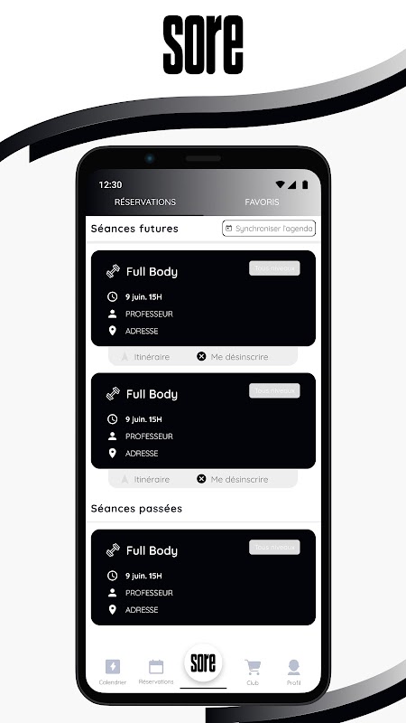 عن طريق تنزيل تطبيق SORE ، يمكنك الوصول بسهولة إلى الجدول الزمني وحجز جلسة درس المجموعة الآن.