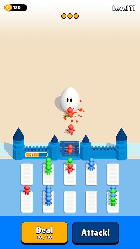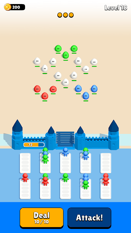 استخدم عناصر التحكم في النقر لتنظيم جيشك حسب اللون. قم بمطابقة الجنود بشكل استراتيجي لبناء أقوى قوة هجومية.