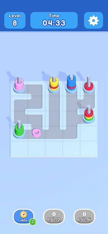 هل أنت مستعد لاختبار مهاراتك في المنطق وحل الألغاز؟ في هذه اللعبة التي تسبب الإدمان والاسترخاء، هدفك بسيط ولكنه يمثل تحديًا: قم بفرز اللفات الملونة على الحوامل بحيث يكون لكل حامل لفات من لون واحد مميز فقط.