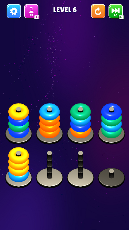 كدّس، بدّل، ورتّب حلقات الألوان اللامعة على الأوتاد الصحيحة حتى يُرتّب كل برج بشكل مثالي. مع كل مستوى، تزداد الألغاز صعوبة، والألوان أكثر إشراقًا، والشعور بالرضا أكبر.