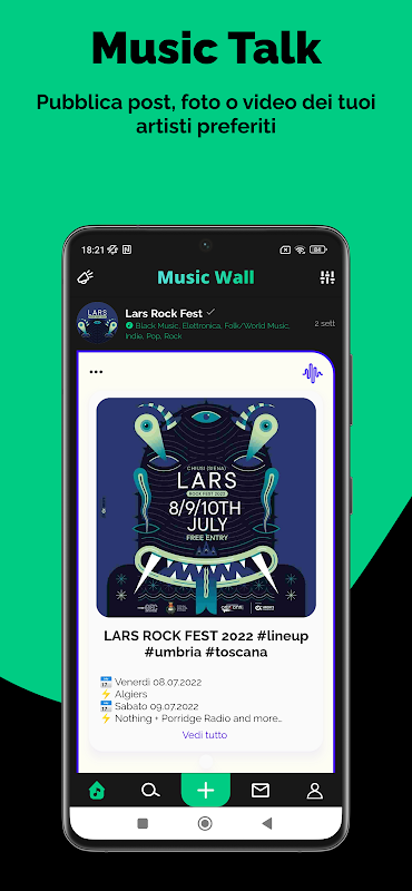 كن جزءًا من مجتمع يمكن لعشاق الموسيقى فيه إخبار بعضهم البعض وتبادل الخبرات وتكوين صداقات جديدة والالتقاء مباشرة للذهاب معًا إلى الحفلات الموسيقية والمهرجانات.