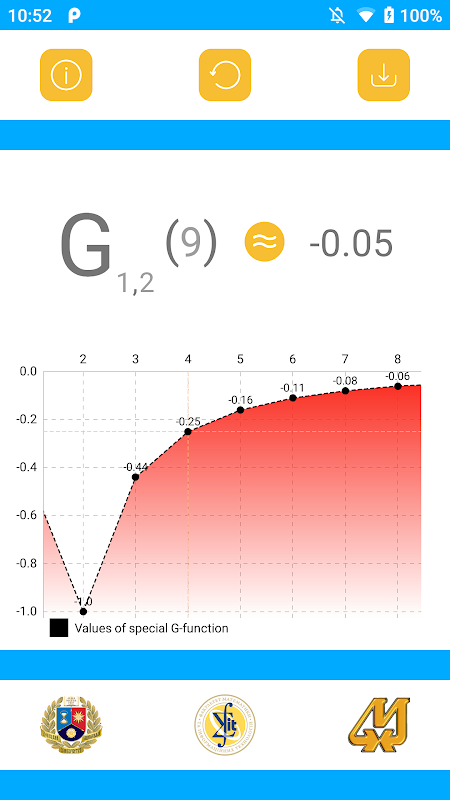 التطبيق يسمح لحساب قيم G- وظيفة خاصة. تم تطوير هذه الوظيفة في جامعة دونيتسك الوطنية (DonNU) في كلية الرياضيات. وظيفة G الخاصة مفيدة للغاية عندما تحصل على حل أساسي لنظام المعادلات التفاضلية باستخدام التحويل فوريير ثنائي الأبعاد.