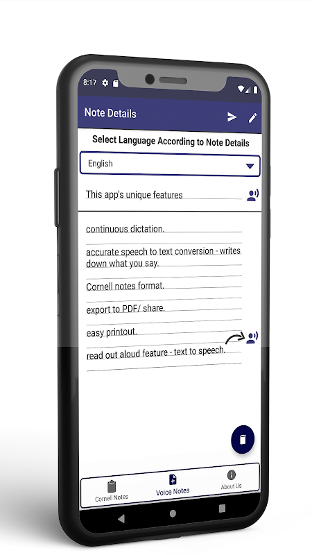 ميزات تطبيق Speech Cornell Notes: