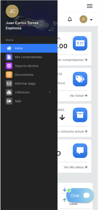 هنا يمكنك مراجعة قسائم الدفع الخاصة بك ، وتنزيل الفواتير الخاصة بك ، والإبلاغ عن المشاكل على الشبكة ، وعرض استهلاكك للإنترنت ، وفتح تذكرة الدعم ، من بين وظائف أخرى.