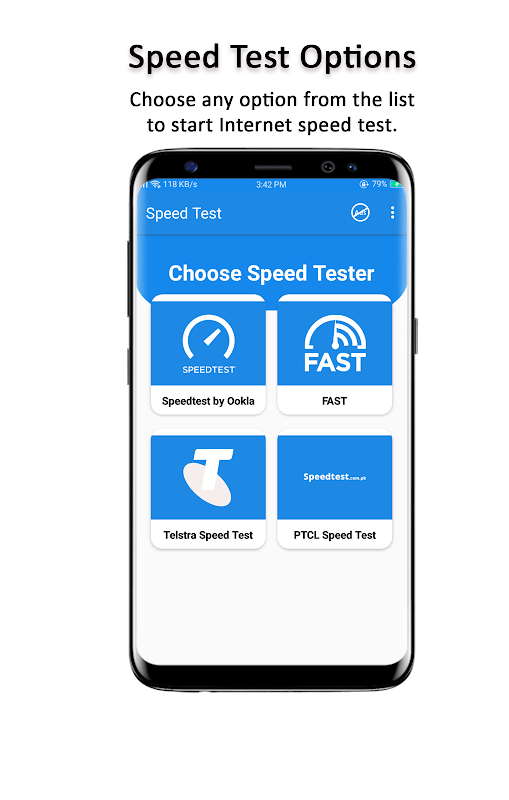 Speed Test provides multiple options to check your Cellular or Wifi internet speed easily. Select an option from the provided list to begin the speed test.