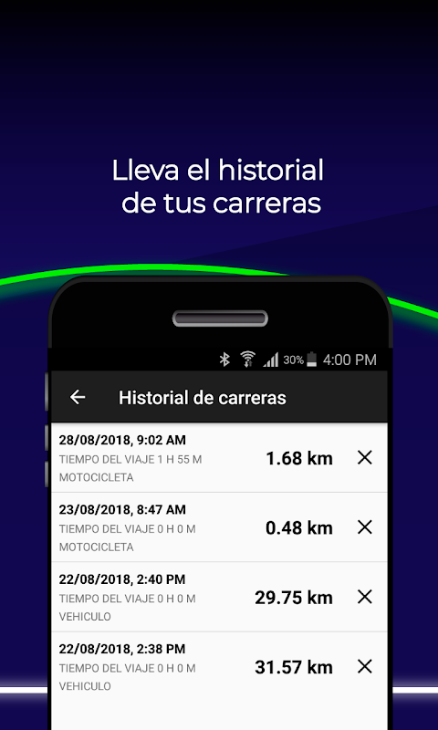 استخدام الدائم لGPS وإنتاج العرض على تفريغ البطارية بشكل أسرع. يمكنك تكوين التطبيق لتتبع في الخلفية deshabilitanto الخيار للحفاظ على شاشة مضاءة من التكوين.