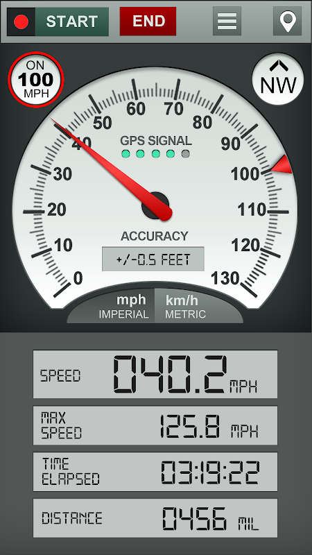 - تتبع السرعة في ميلا في الساعة أو كم / ساعة على أساس MPH أو وضع / H KM.