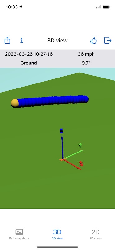 في قسم "My Speedup" بواجهة الويب SPEEDUP Live، يمكن أيضًا تصور مسارات الكرات في ثلاثة أبعاد. إلى جانب الجانب الممتع، قد يوفر التصور ثلاثي الأبعاد أيضًا معلومات قيمة حول جودة رميتك.