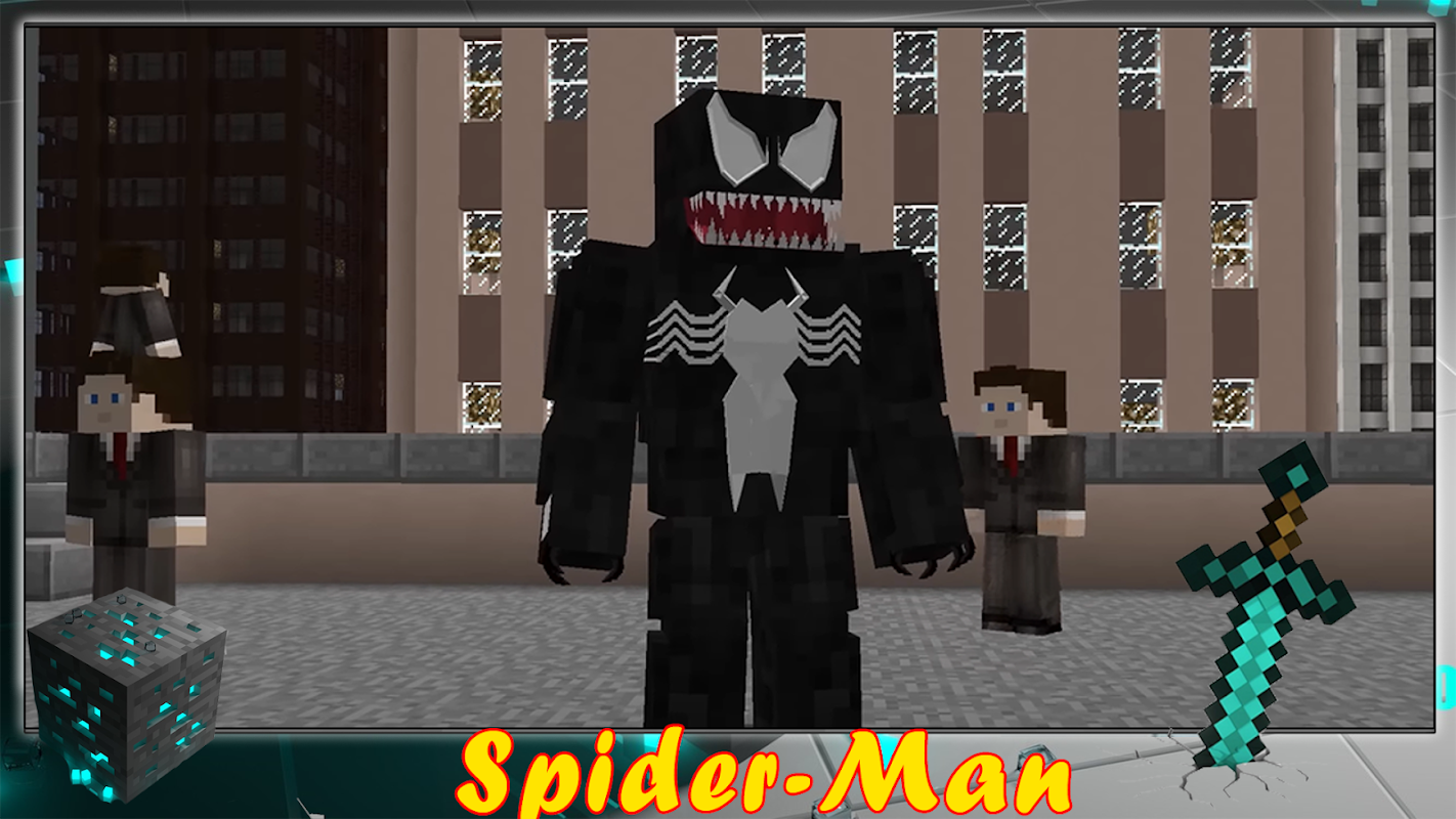 بمساعدة برنامج يسمى Spider-Man Mod for Minecraft PE ، يمكنك إضافة أشكال مختلفة ،