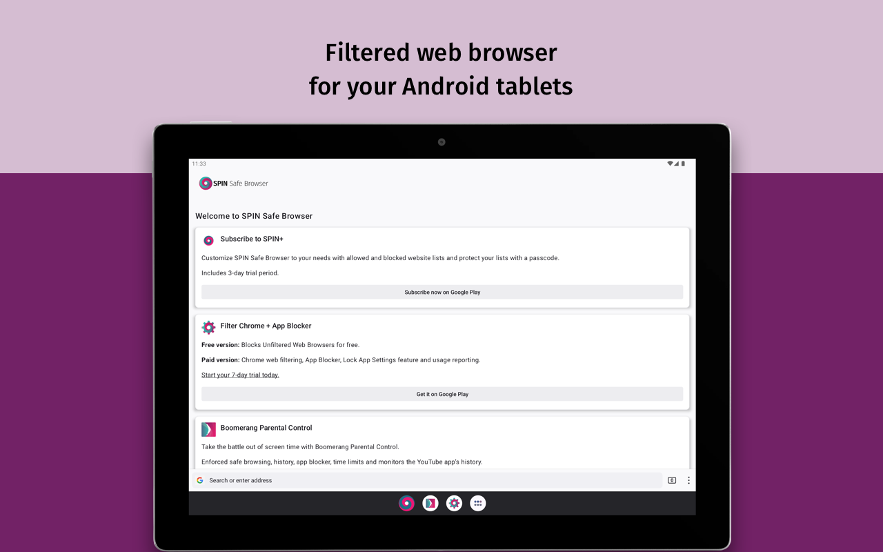 2️⃣ فلتر الويب لـ SPIN وChrome: حظر التطبيقات، وتعيين حدود زمنية، وتطبيق فلترة الويب على Chrome. جرب الإصدار المميز مجانًا لمدة 7 أيام على Google Play: Web Filter for SPIN وChrome: https://play.google.com/store/apps/details?id=com.nationaledtech.managespin