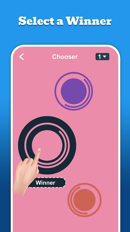 يعمل منتقي الإصبع بمثابة أداة منتقي الإصبع التي تتيح لك وضع أصابعك على الشاشة لاختيار فائز عشوائي من المجموعة. يدعم اختيار ما يصل إلى أربعة فائزين من خلال وضع إصبع واحد إلى أربعة أصابع على الشاشة.