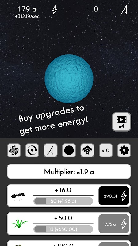 في هذه اللعبة الإضافية، ستبدأ بعالم صغير، حيث يمكنك توليد الطاقة عن طريق تدويره. قم بتوسيع عالمك، ثم دمره بيديك للحصول على المادة المضادة، مما سيتيح لك اكتساب المزيد من الطاقة على المدى الطويل!