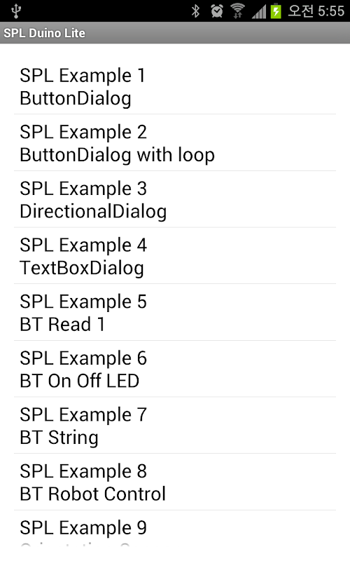 SPL-Duino Lite provides ButtonDialog, DirectionalDialog, TextBoxDialog, OrientationalSensorDialog, etc to communicate with Arduino board.