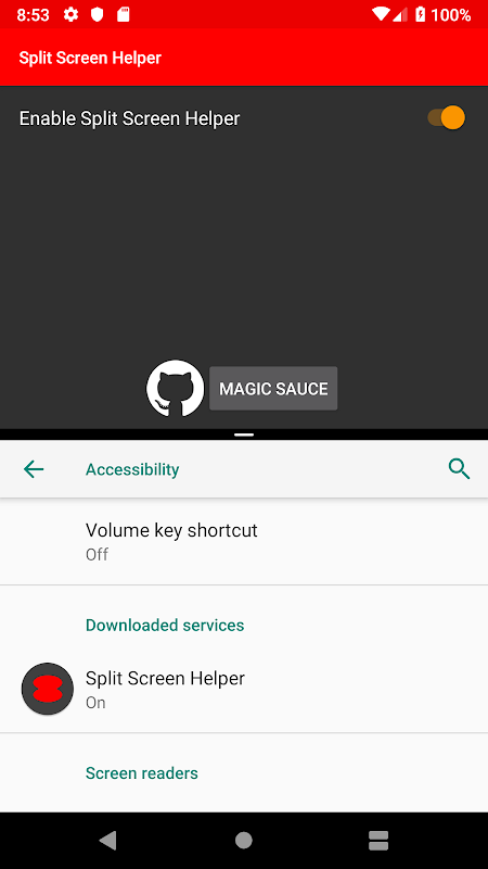 يستخدم هذا التطبيق خدمة إمكانية الوصول لتمكين هذه الميزة. نظرًا للطبيعة الحساسة للأذونات المطلوبة ، فإن هذا التطبيق مفتوح المصدر.