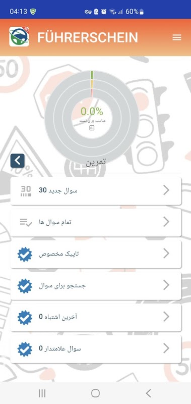 يحتوي هذا التطبيق على جميع الأسئلة الرسمية لأسئلة DEKRA كتالوج TÜV الحالية.