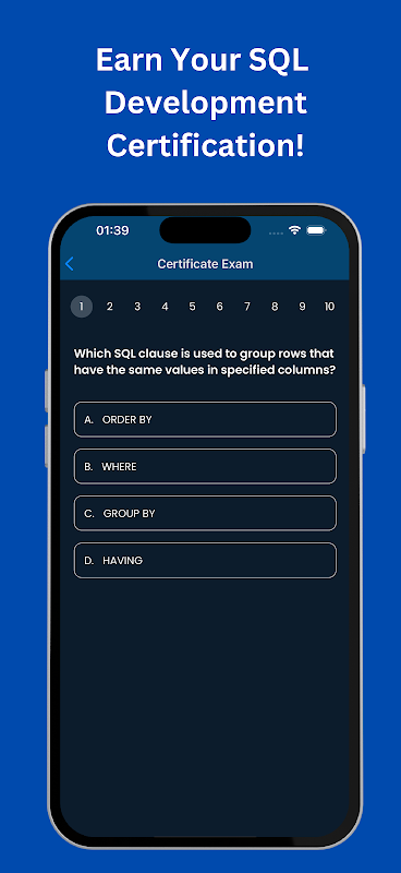 محرر SQL التفاعلي: تدرب على كتابة استعلامات SQL مباشرةً في التطبيق باستخدام محرر SQL المدمج وقاعدة البيانات المباشرة. قم بتشغيل أوامر مثل SELECT وINSERT وUPDATE وDELETE وJOIN وشاهد النتائج على الفور. قم بتعديل الجداول وإنشاء المخططات وتجربة مجموعات البيانات الواقعية. كل ما تفعله يحدث داخل بيئة آمنة ومعزولة تتصرف مثل محرك SQL حقيقي، دون الحاجة إلى عمليات تثبيت.