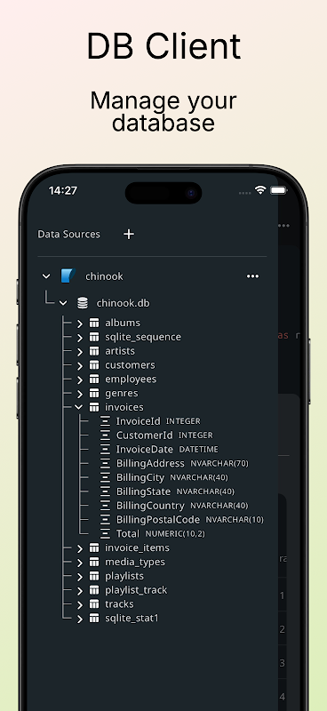 اتصل بـ Postgres وMySQL وSQLite. تعلم وتدرب على SQL على جهازك.