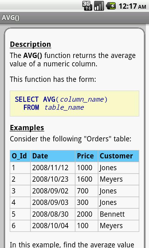 وتصنف وظائف SQL وقابلة للبحث. كل شاشة المعلومات الدالة تحتوي على وصف، المعلمات، والكثير من