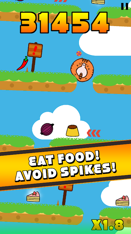 تناول الطعام على طول منصات لكسب المزيد من النقاط والقطع النقدية، ولكن احترس من المسامير!