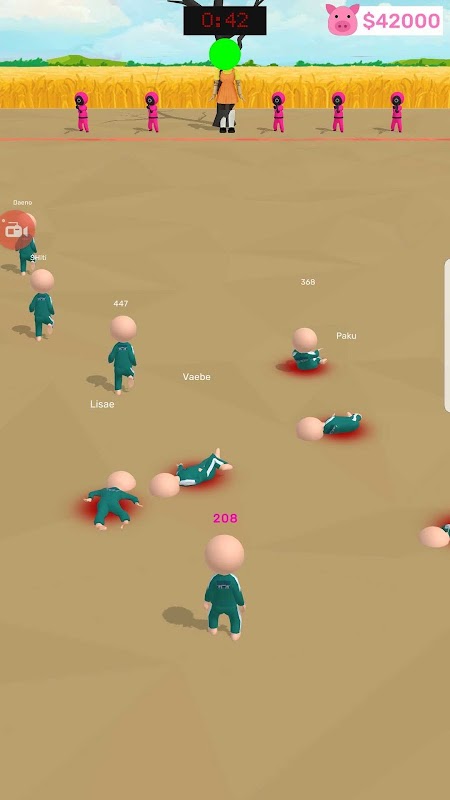 Squid Game: Red Light, Green Light is a kids game, but with very strict rules. Any move on Red light and you will be killed. Tap and hold your finger on the screen and your player run on the field, on Red light you should release your finger, any delay, and you die. Be careful, a lot of blood in this game
