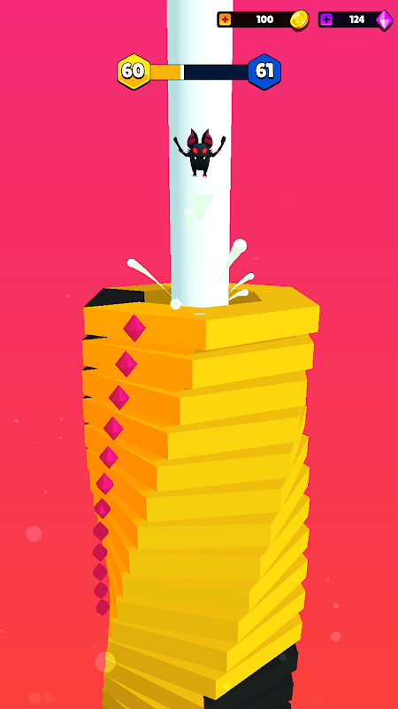 This jumping game to smash the stack seems simple. But actually, it is an addictive and brain teasing stack survival game. You have to hold your finer on screen to keep jumping your character on helix to crush its tiles. Beware to not hit the black stacks. Otherwise, your jumping player will die. So, wisely hole and release your finger to jump on stack and smash them. So that you’ll be able to let your character escape from the stack.